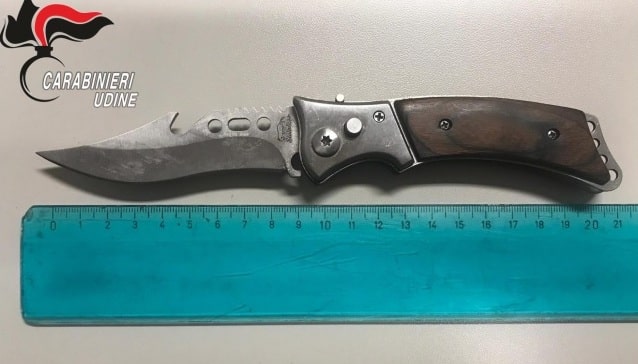 I Carabinieri del Nucleo Radiomobile della Compagnia di Tarvisio nel corso di un controllo alla circolazione stradale a Malborghetto, hanno deferito in stato di libertà per porto abusivo di armi od oggetti atti ad offendere un 41enne extracomunitario, in quanto a seguito di una perquisizione del mezzo su cui circolava, è stato trovato in possesso di un coltello a serramanico di 21 centimetri, di cui 9 di lama, occultato nel portaoggetti.