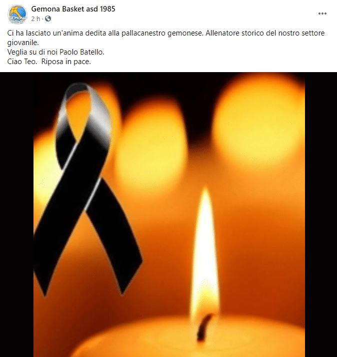 Il prof. Batello è stato a lungo allenatore nel settore giovanile del Gemona Basket, che ha voluto dedicargli un ricordo sulla propria pagina Facebook.