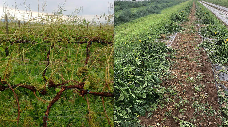 «Nel codroipese, del mais sono rimasti in piedi solo gli steli – sottolinea Alberto Vendrame -. Anche le pannocchie sono state danneggiate e, nella fase di crescita, potranno produrre muffe indesiderate mettendo a repentaglio la qualità del (poco) raccolto. Di converso il mancato raccolto anche delle piante fresche, creerà contraccolpi alla zootecnia. Da una prima ricognizione si può dire che il danno sul mais è stimabile attorno al 70-80%. Pure la soia è stata completamente defogliata e, se si riprenderà, sarà sicuramente meno produttiva. Infine, i danni sulle vigne e sui grappoli, molto elevati, saranno probabilmente aggravati dalle infezioni che, da qui alla vendemmia, attaccheranno gli acini, peggiorando la qualità del raccolto».