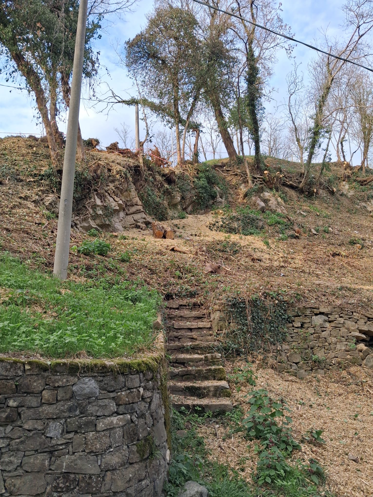 In un’ottica di valorizzazione della funzione ricreativa dell’area e di promozione del paesaggio, l’intervento realizzato dalle maestranze regionali – avviato a inizio gennaio e durato circa tre mesi – ha riguardato nello specifico la pulizia delle essenze nella zona che si affaccia alla Salita di San Lorenzo, ridando visibilità ai terrazzamenti in muri di pietra e alle varie scalinate, mentre dietro la Chiesa di San Lorenzo è stato ripristinato il grande muraglione delimitativo dell’area attualmente destinata a manifestazioni. La seconda fase dei lavori sarà avviata a fine 2026.