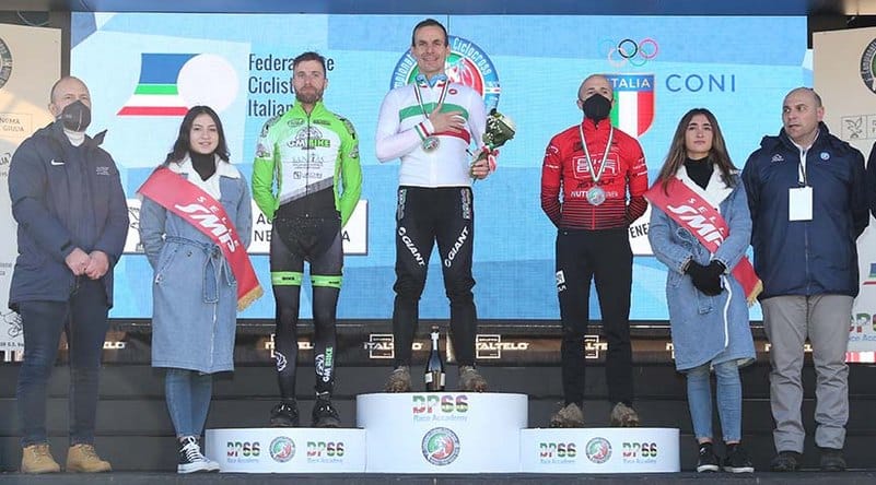 Gianfranco Mongardi è il campione italiano ciclocross tra gli M8, battuti Giovanni Parro (Zero 5 Bike Team) e Giuseppe Di Stasio (MTB Novagli).