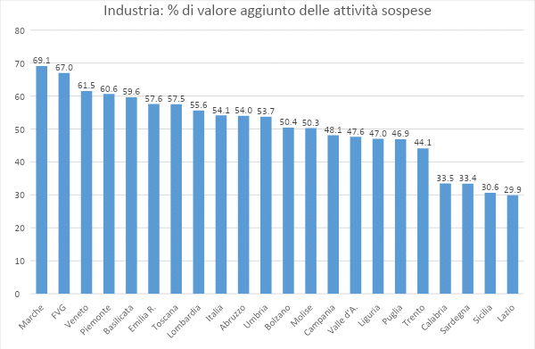 Se al momento sono ancora tanti gli interrogativi che riguardano la Fase 2 e, in particolare, su una sua modulazione differente da regione a regione e per settori, sulla base delle analisi dell’Ufficio studi di Confindustria Udine, su dati diffusi dall’ Istat e da Prometeia, è possibile fare un primo punto su come la sospensione delle attività “non essenziali”, stabilita durante la Fase 1, si rifletta sul territorio italiano.