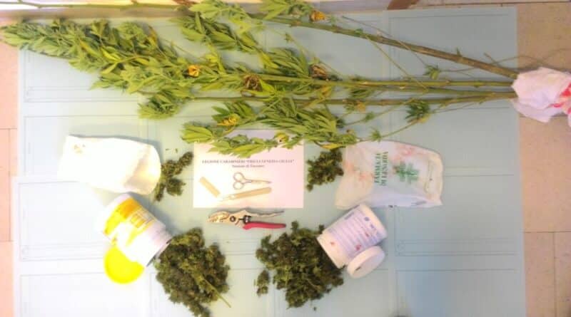 Nella circostanza, la droga è stata posta sotto sequestro e l’uomo deferito in stato di libertà per l’ipotesi di reato di detenzione ai fini di spaccio di sostanze stupefacenti. Il giorno seguente l’uomo è stato sorpreso nel medesimo campo agricolo con alcuni contenitori contenenti infiorescenze delle stesse piante che complessivamente pesavano 219 grammi, poste poi sotto sequestro.