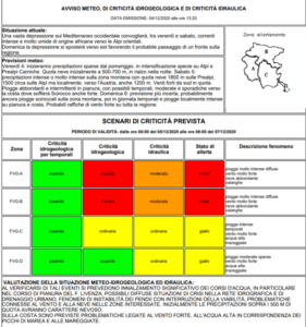 “Al fine di fronteggiare l’emergenza prevista nelle giornate del 5 e 6 dicembre per eventi meteo intensi sul territorio regionale del Pordenonese e dell’Alto Friuli, nel pomeriggio alle 16 verrà convocata la riunione del Corem presieduta dal governatore del Friuli Venezia Giulia Massimiliano Fedriga – dice il vicegovernatore Riccardo Riccardi dalla sala operativa della Protezione civile di Palmanova –. In quell’occasione con i vertici delle Amministrazioni statali regionali e del sistema regionale integrato di Protezione civile, di cui fanno parte le Direzioni della Regione il sistema della Sanità, le Prefetture, i Vigili del fuoco, le Forze dell’ordine e i gestori delle reti, verrà compiuta la disamina della situazione in atto, emessi i relativi provvedimenti di emergenza ed assunte le eventuali altre misure di contenimento ritenute opportune”.