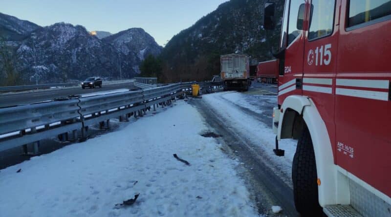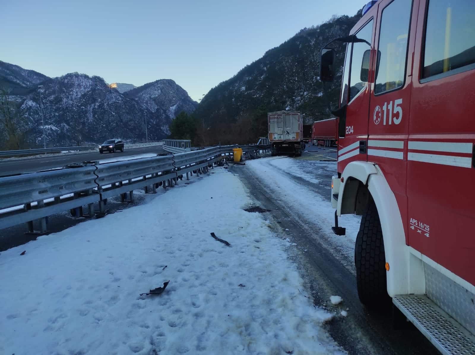 Mezzo pesante contro il guardrail, intervento dei Vigili del Fuoco in A23 a Moggio