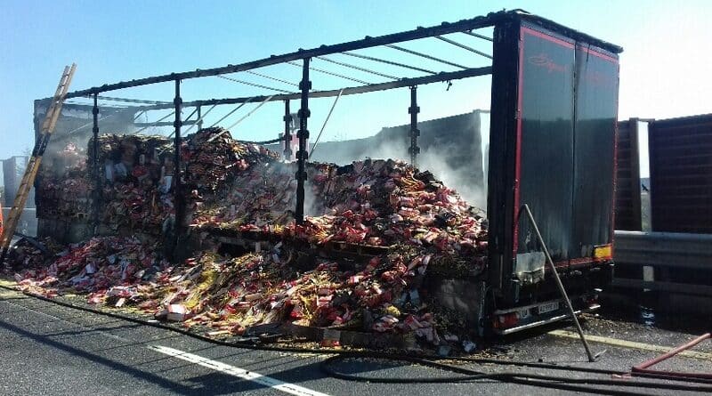 Un mezzo pesante con targa straniera che trasportava pasta ha preso fuoco (nessuna conseguenza per l’autista) verso le 14,00 di oggi – giovedì 9 aprile – lungo l’autostrada A4 fra Redipuglia e la barriera di Trieste – Lisert in direzione Trieste. L’autista, accortosi del fumo, è riuscito a fermare il mezzo e a sganciare la motrice dal rimorchio. Per consentire ai mezzi di soccorso di intervenire, l’autostrada e lo svincolo in entrata di Redipuglia verso Trieste sono stati chiusi. Dopo l’intervento dei Vigili del fuoco che hanno spento le fiamme il mezzo è stato rimosso. Sono ancora in corso le operazioni di smassamento del materiale bruciato e la bonifica dell’asfalto, un intervento che non sarà breve. I tempi di riapertura dell’autostrada, quindi, non sono al momento stimabili.