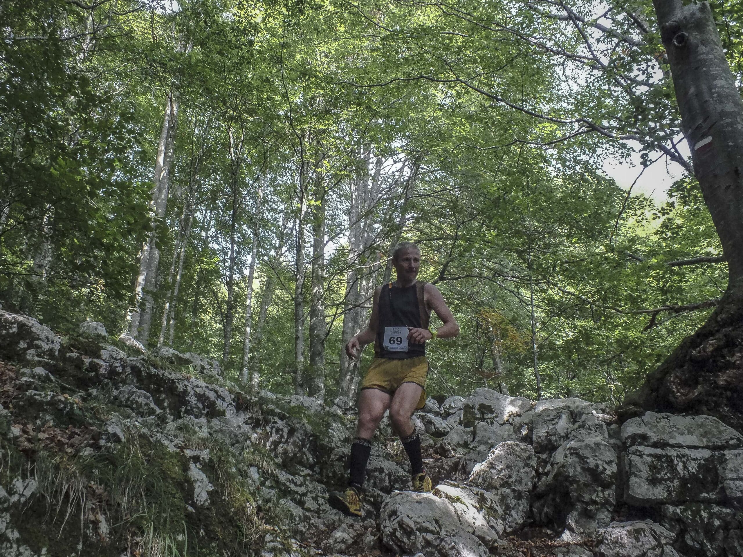 Pronti via e subito un quartetto a dettare il ritmo: Tiziano Moia, Daniele Matiz, Michele Sulli e Fabrizio Puntel. Il più attivo è Moia ma la situazione è fluida: salendo verso Forcella Lastè (2.040 metri di altitudine, il punto più alto della manifestazione) i quattro sono tutti nello spazio di un minuto, con recuperi o cedimenti minimi. Rapida discesa verso il versante bellunese e la Conca dell’Alpago: passaggio al rifugio Semenza (2.020 metri di altitudine) con Moia sempre davanti, poi transito a Malga Pradosàn (1.338 metri di altitudine, il punto più basso del percorso) e passaggio a Pian de le Lastre, dove transita in testa Puntel, autore di una discesa da manuale, seguito da Matiz, Moia e Sulli. Qui inizia la risalita verso la cresta. Cede Moia, alle prese con un problema al piede che non lascia tregua. Rimangono in tre davanti e si giocano il successo lungo la salita che porta al monte Tremol (2.007 metri di altitudine), straordinario balcone sulla pianura friulano veneta. Il più forte si dimostra Matiz che in breve accumula un paio di minuti di vantaggio sul giovanissimo Sulli (carnico di Verzegnis, classe 1993, quinto ai recenti Mondiali Under 23 di skyrace in Abruzzo), tre su Puntel. Le posizioni sono delineate e non cambiano sulla linea del traguardo: vince Matiz in 2h40.55 davanti a Sulli (2h43.11) e Puntel (2h43.45).