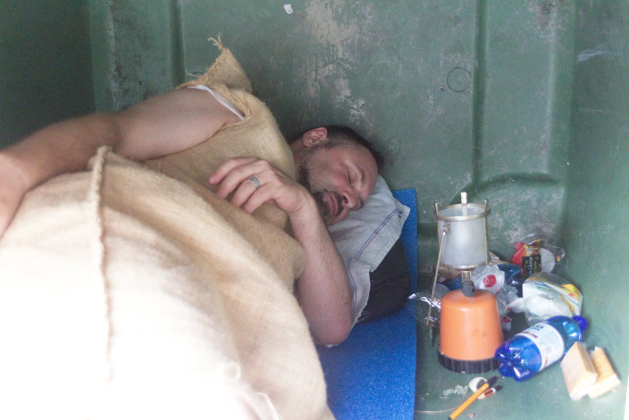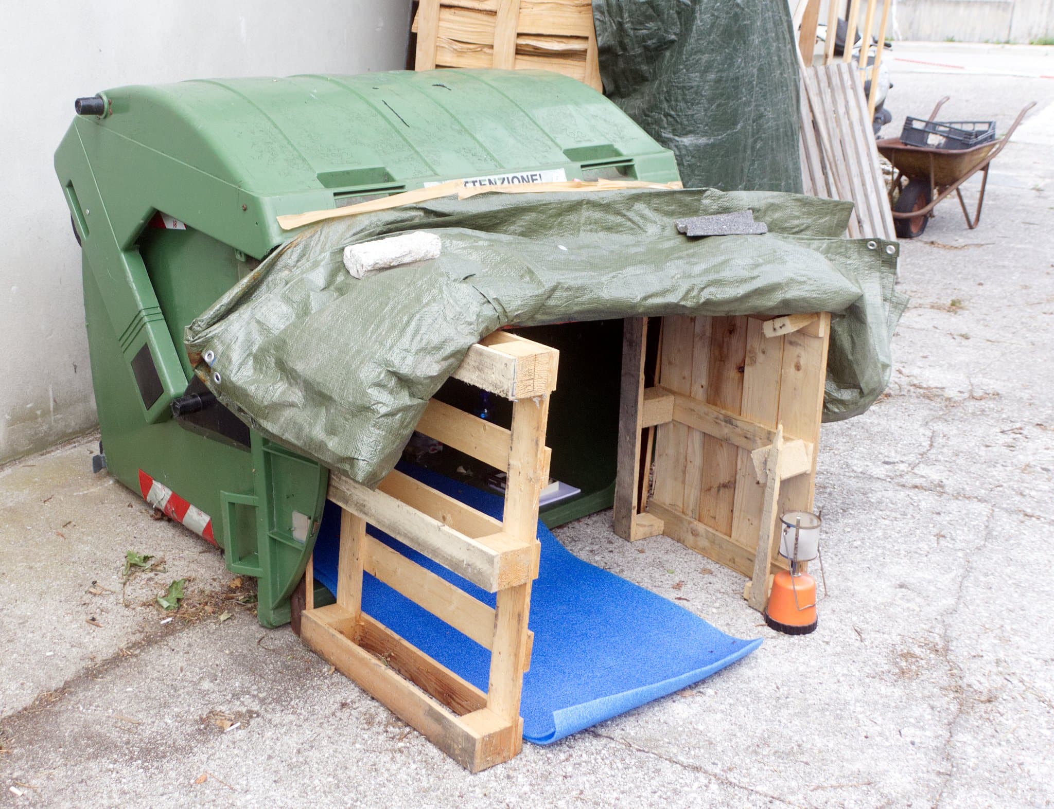 Moggio Udinese, il gesto shock di Emanuele Franz: vive in un bidone dei rifiuti per far riflettere