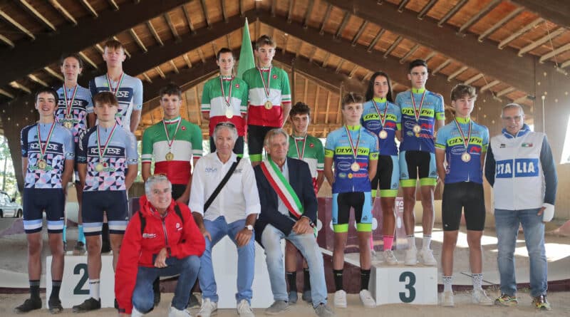 Tutti col fiato sospeso nell’ultimo giro, ma Ettore Fabbro era un fulmine… a ciel sereno e andava a fermare il cronometro per il Jam’s Bike Team Buja su 46’57 e dagli accompagnatori saltavano in pista le bandiere tricolori, con i quattro friulani a festeggiare un titolo che potrebbe essere il preludio a quello di domani per società.