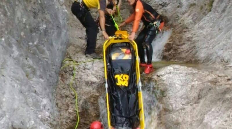 Uno dei tre che hanno proseguito è scivolato perdendo aderenza e cadendo per una ventina di metri sui salti di roccia del corso d’acqua, morendo sul colpo. Si tratta di un 37enne residente a Rive d’Arcano, Lorenzo Balzarano. Gli amici si sono recati fuori dalla forra verso il viadotto della strada statale sottostante per chiamare il NUE112. Sul posto è intervenuto l’elicottero della centrale operativa di Udine che ha calato con il verricello il tecnico di elisoccorso con il medico. Constatato il decesso, il recupero della salma è stato affidato ai tecnici di forra del CNSAS, che hanno raggiunto le pozze con la barella di forra, per portarla giù a spalla.