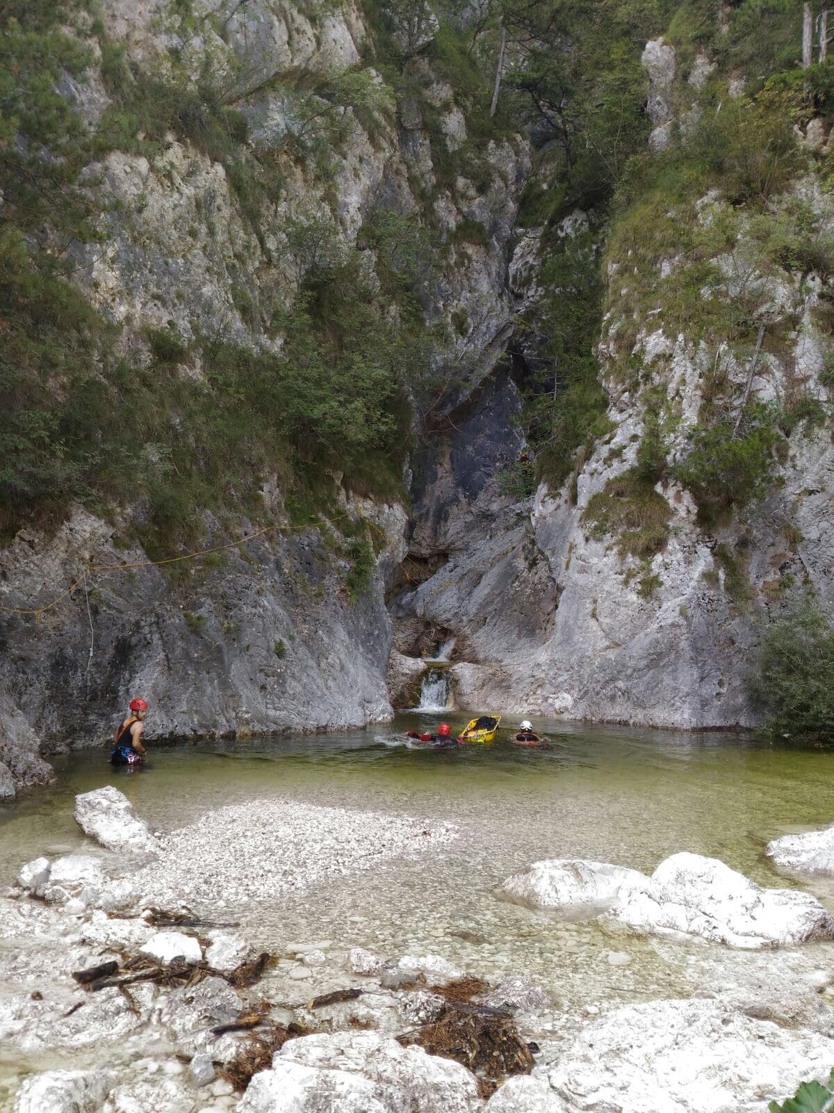 Intervento del CNSAS di Moggio Udinese domenica pomeriggio nella forra del Rio Favarinis, in Comune di Amaro, dove un uomo della provincia di Udine è morto per andare a fare il bagno con tre amici nella forra. Tre dei quattro amici della compagnia si sono spinti in cerca della pozza di acqua più grande e