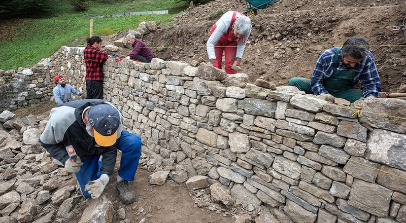 Per (ri)fare un muro a secco servono: pietre adeguate, uomini e donne pazienti e resistenti alla fatica, conoscenze che solo un valente artigiano è in grado di comunicare e trasmettere. E tanta, tanta pratica. I cantieri del paesaggio promossi dall’Ecomuseo delle Acque del Gemonese e dal Comune di Artegna compiono sei anni, tra pochi giorni partirà l’edizione 2020 del corso che in Borgo Monte completerà il ripristino di un lungo muro di contenimento.