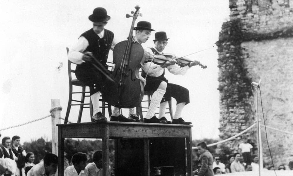 Il Gruppo Folkloristico “Val Resia” è sorto ufficialmente nel 1838, quando un gruppo di suonatori e danzerini suonò e ballò a Udine, in occasione della visita dell’imperatore d’Austria Ferdinando I. Le musiche e le danze della Val Resia sono molto antiche, è probabile che abbiano accompagnato i primi insediamenti della comunità resiana nel VI secolo. La piccola orchestra consta di soli due strumenti: il violino chiamato cïtira in resiano e il violoncello detto bünkula, che vengono opportunamente modificati per rendere il suono simile a quello di una cornamusa, utilizzata in valle prima dell’avvento di questi strumenti a corda. Il battito del piede, che accompagna la musica, è il fondamentale “terzo strumento” utilizzato per assicurare il ritmo. A Resia non ci sono scuole di musica popolare, i giovani imparano a suonare “ad orecchio” ascoltando i più anziani.