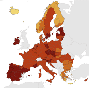 Nella mappa dei contagi UE il FVG è in rosso scuro