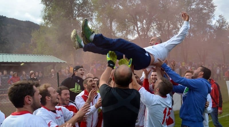 (nella foto di Alberto Cella, l’allenatore del Real Ortobelli portato in trionfo nel giorno della conquista dello scudetto 2016)