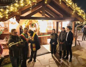 Presenti all’inaugurazione il parroco don Giampietro Fossà, il vicepresidente del Consiglio Regionale Stefano Mazzolini e vari amministratori carnici, compreso il sindaco di Lauco Stefano Adami, padre di Emanuele e Katherina.