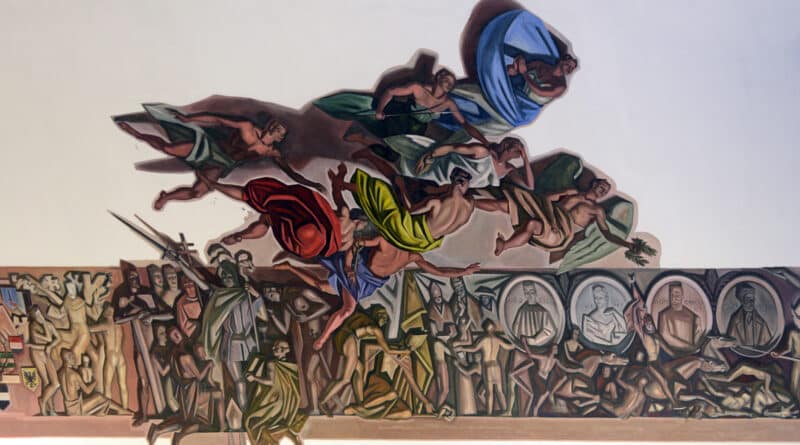 L’imponente dipinto murale di Walter Resentera sulla storia del Friuli, che dal 1958 decora la volta della sala macchine della centrale idroelettrica di Somplago, splende di nuovo.