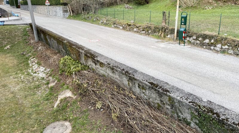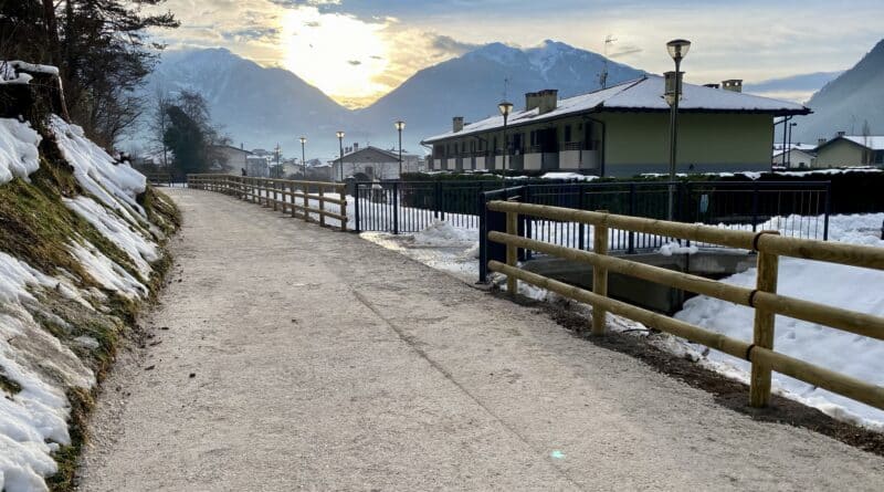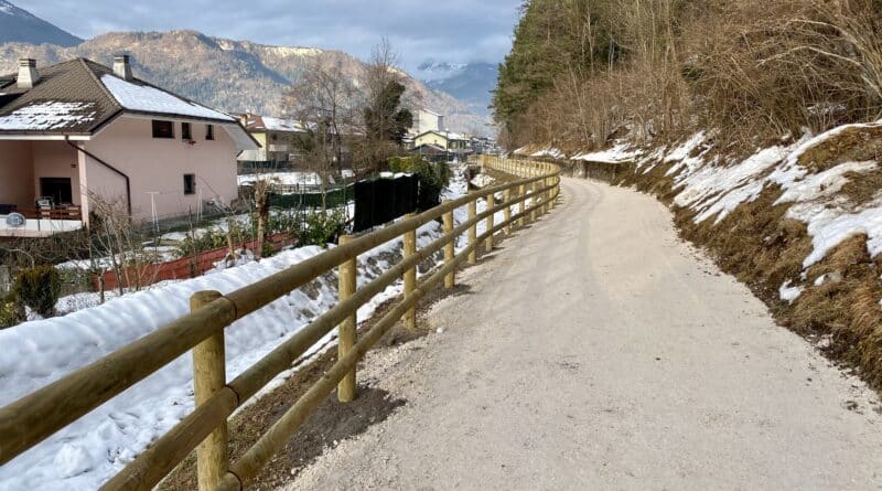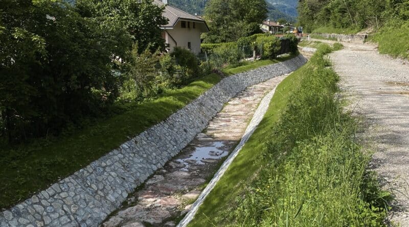A seguito di questi lavori e nell’ottica di valorizzare il percorso sterrato sotto monte per renderlo più fruibile da bambini e famiglie, è stato sistemato il fondo stradale con la posa di materiale ghiaioso stabilizzante bianco, sono state installate staccionate in legno a margine del canale al fine di rendere maggiormente sicura la passeggiata e cestini per la raccolta delle deiezioni canine.