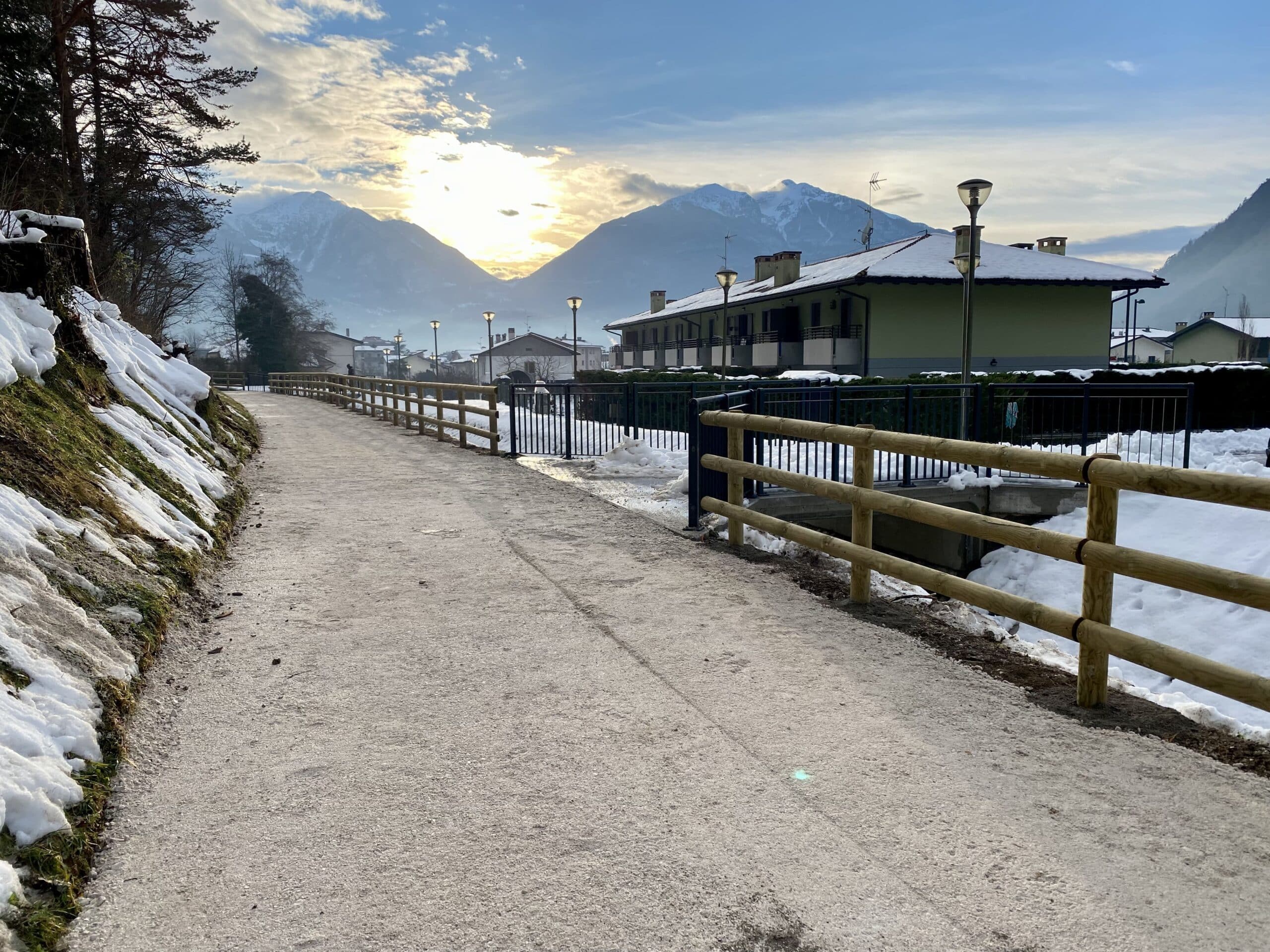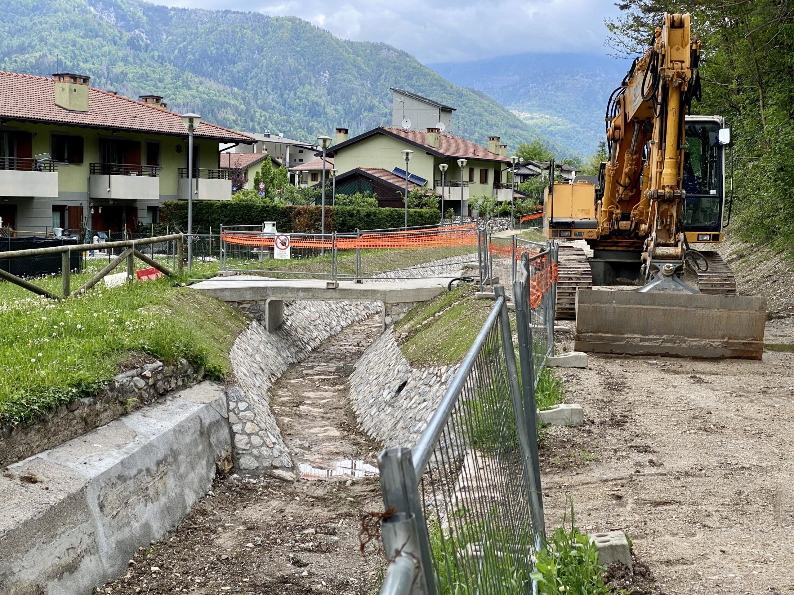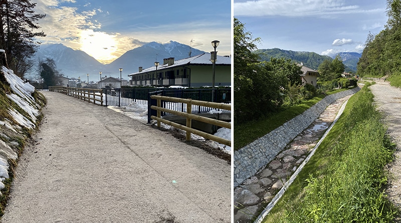 A seguito di questi lavori e nell’ottica di valorizzare il percorso sterrato sotto monte per renderlo più fruibile da bambini e famiglie, è stato sistemato il fondo stradale con la posa di materiale ghiaioso stabilizzante bianco, sono state installate staccionate in legno a margine del canale al fine di rendere maggiormente sicura la passeggiata e cestini per la raccolta delle deiezioni canine.
