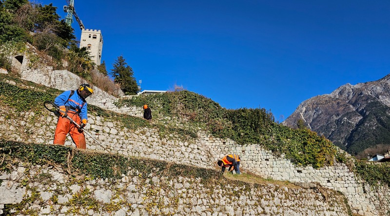 SUBITO GEMONA – Gli operai regionali, che saranno impegnati tutto l’inverno, hanno cominciato a dicembre da Gemona. Nell’area del Castello, i lavori in convenzione (in scadenza nel giugno 2027) prevedono, in continuità con quanto fatto l’anno scorso, il taglio della vegetazione nell’area delle altane, collocate sui terrazzamenti del versante sud e sud-ovest del colle. L’obiettivo è quello di preservare la visibilità dei terrazzamenti in muri di pietra e delle diverse scalinate storiche che caratterizzano il sito. Gli interventi interesseranno inoltre il versante occidentale del Castello, con la rimozione della vegetazione arbustiva e infestante lungo il percorso Elti-Zignoni, realizzato nel 1939 e attualmente non agibile, che collega la sommità del colle alla storica piazza del Ferro ed attraversa la porzione più boschiva e impervia dell’area.Â