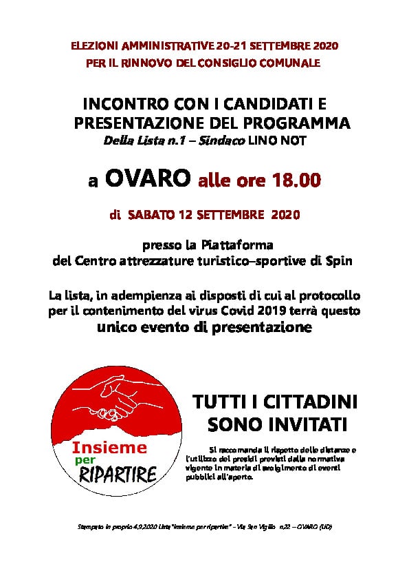 Ovaro, sabato la presentazione della lista che sostiene Lino Not