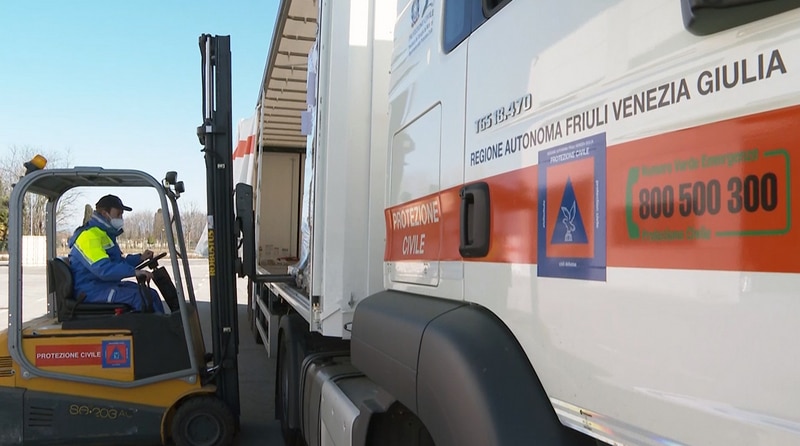 “A bordo di quattro camion messi a disposizione dalla Ceccarelli group – spiega l’esponente dell’esecutivo Fedriga – sono stati caricati medicinali e dispositivi farmaceutici raccolti in questi giorni tra le regioni; la nostra sede è stata individuata quale hub nazionale del centro di smistamento del materiale proveniente da tutta Italia e che, di volta in volta, verrà inviato nei luoghi che saranno indicati dal Dipartimento nazionale. Quello dei convogli partiti oggi da Palmanova sarà un viaggio non facile; sappiamo di affidare questi carichi a professionisti di grande qualità che sono sia i nostri tecnici della Protezione civile nonché il personale della ditta friulana che ha messo a disposizione parte dei convogli e degli autisti, ai quali va il mio ringraziamento”.