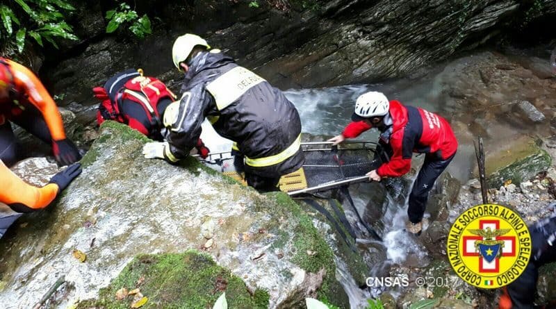L’avvistamento è avvenuto sul fondo del Riu di Val nel solco idrografico che, al confine tra i comuni di Paularo e Arta Terme, corre sotto la strada che da Cedarchis va a Paularo, dalla quale l’uomo è precipitato con un salto di circa 150 metri.
