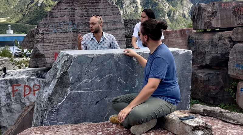 Performance d’arte tra i blocchi di marmo a Tolmezzo