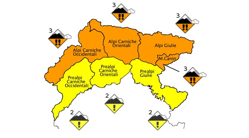 Proponiamo il Bollettino Valanghe emesso dalla Regione FVG oggi alle ore 14.