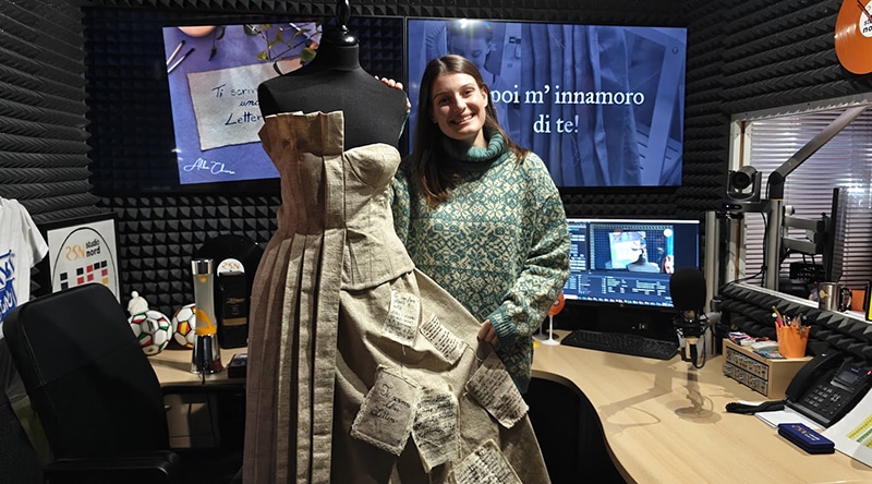 Della canzone si è parlato a “RadioAttiva“, la trasmissione di Radio Studio Nord condotta da Cristian Comelli in onda da lunedì al venerdì dalle 10 alle 12, con ospite in studio la stessa AlbaChiara (nella foto) e il vestito su cui è stato scritto il testo, protagonista del video del brano.