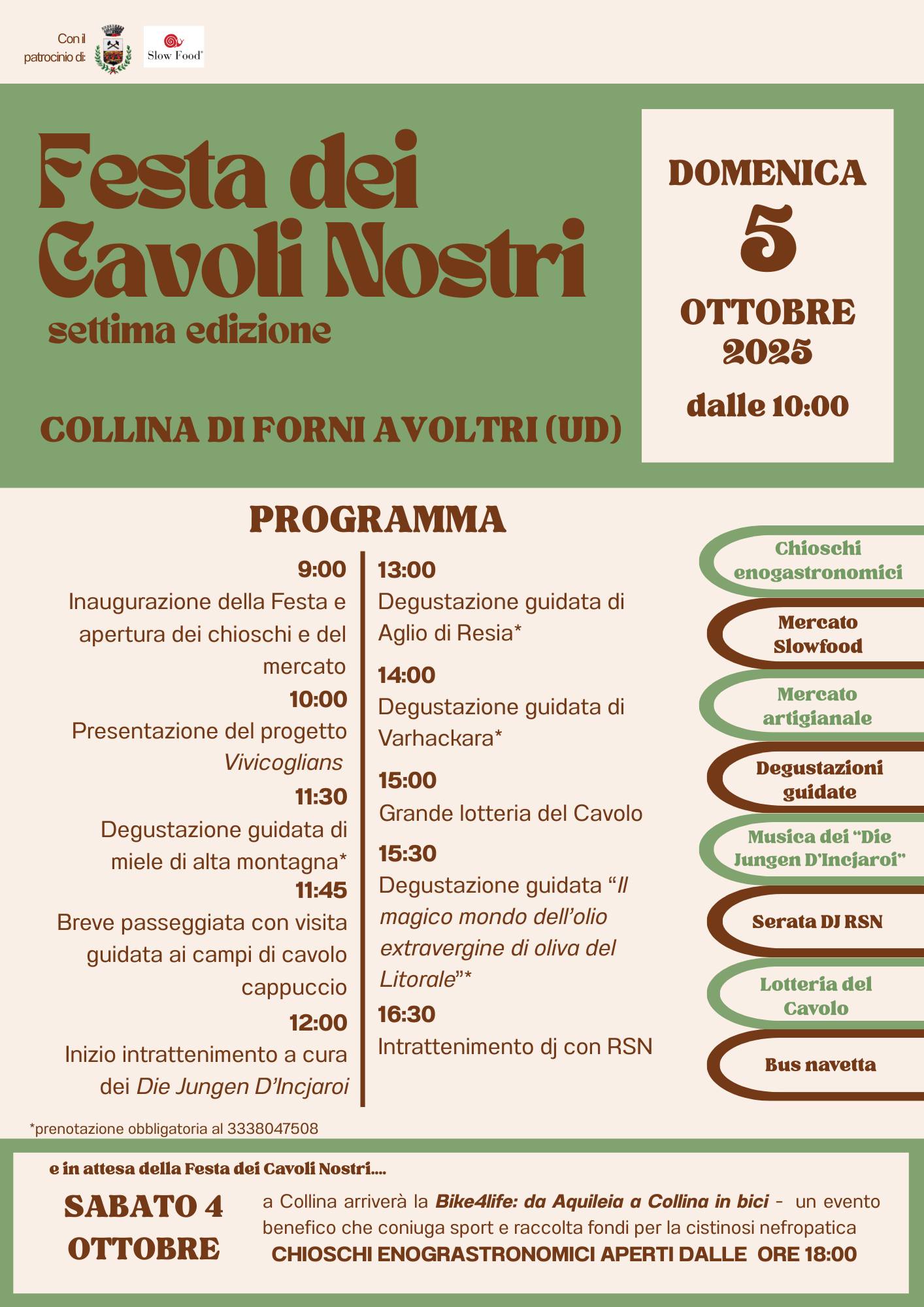 In piazza degli Alpini ci sarà una giornata dedicata a tradizione, gusto e divertimento con gli stand dei Presìdi Slow Food con 4 laboratori del gusto, mercatini, piatti tipici e i ritmi travolgenti del gruppo Die Jungen D’Incjaroi.
