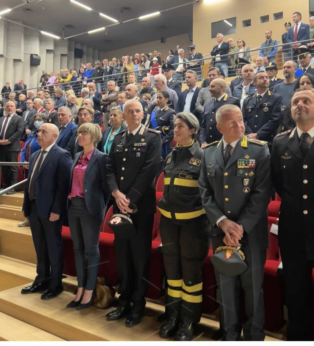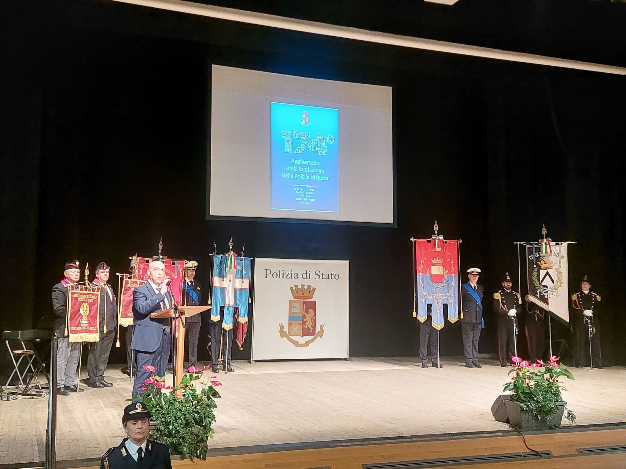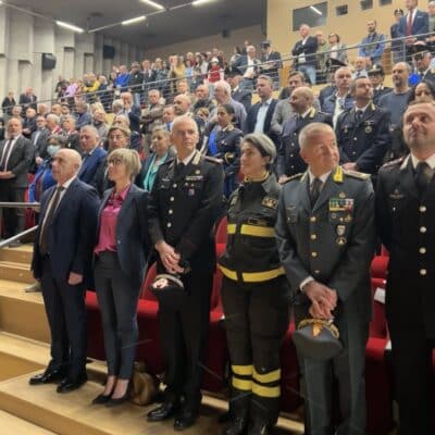 Si è aperta in mattinata con i momenti di commemorazione dedicati ai caduti della Polizia di Stato e si è conclusa al Teatro Sociale di Gemona del Friuli la giornata del 174° anniversario della fondazione della Polizia di Stato in provincia di Udine. Il programma ha visto, alle 8.30, la deposizione di una corona d’alloro da parte del questore presso il monumento ai caduti in piazzale D’Annunzio, alla presenza del prefetto di Udine, seguita dagli onori resi in viale Ungheria ai colleghi deceduti nella cosiddetta Strage di Natale. La cerimonia ufficiale è poi proseguita a partire dalle 11 con l’arrivo delle autorità, i gonfaloni dei Comuni di Udine, Gemona del Friuli, Tolmezzo e Cividale del Friuli, il Labaro dell’Associazione nazionale Polizia di Stato, la lettura del messaggio istituzionale, gli interventi delle autorità e la consegna dei riconoscimenti.