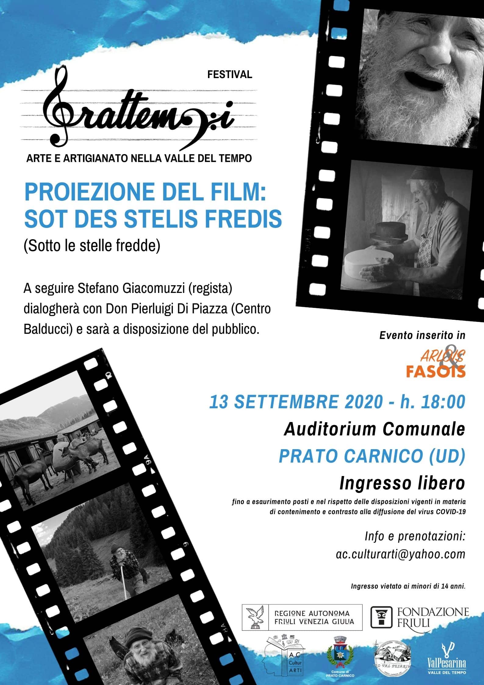 Prosegue in Val Pesarina il Festival “Frattempi. Arte e Artigianato nella Valle del Tempo” con la proiezione del film “Sotto le stelle fredde” (Sot des stelis fredis), che si terrà domenica 13 settembre all’Auditorium Comunale di Prato Carnico, con inizio alle 18. A seguire il regista Stefano Giacomuzzi dialogherà con don Pierluigi Di Piazza (Centro Balducci) e sarà a disposizione del pubblico.