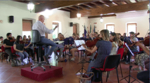 L’Orchestra Giovanile Alpina HEurOpen con il direttore Bressan durante le prove a Malborghetto