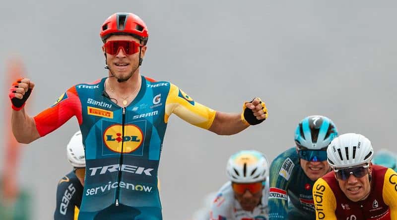 “Onestamente è stata più dura di quanto mi aspettassi, ma sono felicissimo – racconta il 25enne della Lidl Trek -. Prevedevo dei ventagli, ma è stata davvero tosta. Pensavo che il gruppo dietro ci avrebbe ripresi, abbiamo dovuto spingere moltissimo per restare davanti. I miei compagni hanno fatto uno sforzo impressionante per me e sono davvero felice del loro lavoro. Devo ringraziare tutti per come mi hanno supportato durante la tappa. Nel finale la volata è stata un po’ complicata. Quando non si è in molti davanti, ci si può aspettare di tutto. Bisogna sempre stare attenti ai gruppetti di tre o quattro corridori che attaccano, rischiando di non riuscire più a riprenderli. Ma i ragazzi sono stati bravissimi a tenere unito il gruppo. Mi hanno portato in una posizione perfetta per vincere”.