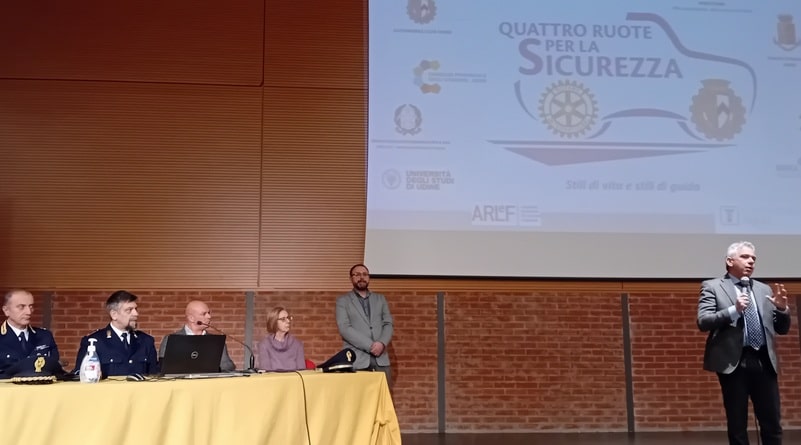 È ripartito il ciclo di conferenze sull’educazione stradale e sulla legalità, che fa parte integrante del progetto Quattro Ruote per la Sicurezza – Stili di vita, stili di guida, rivolto ai ragazzi e alle ragazze che frequentano le classi terze e quarte delle Istituzioni scolastiche Secondarie di secondo grado della provincia di Udine. Oltre mille gli studenti coinvolti, dieci le scuole partecipanti e un fitto calendario lungo tre mesi che terminerà con la cerimonia di premiazione di un concorso di idee.