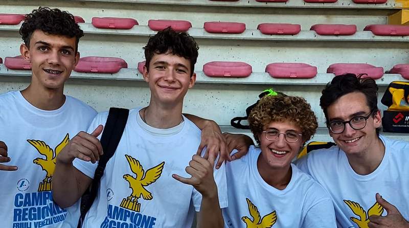 Campioni regionali sono Thomas Siega nei 100 metri, Nicola Bressan nei 400, Andrea Vuerich nel lancio del disco e Claudio Pugnetti nel giavellotto, assieme nella foto.
