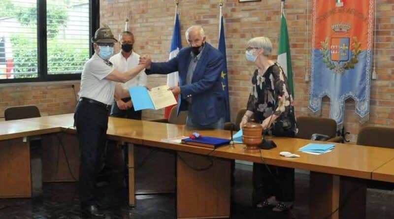 All’inizio della cerimonia sono state consegnate alcune benemerenze alle persone che nel 2020 hanno collaborato con l’Amministrazione comunale al fine di garantire la buona riuscita delle tappe del Giro.