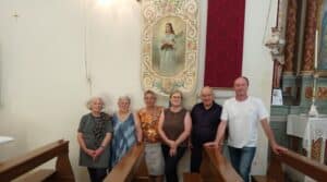 il momento della consegna dell’opera con il parroco don guido mizza, i restauratori ed alcuni rappresentanti della comunità.