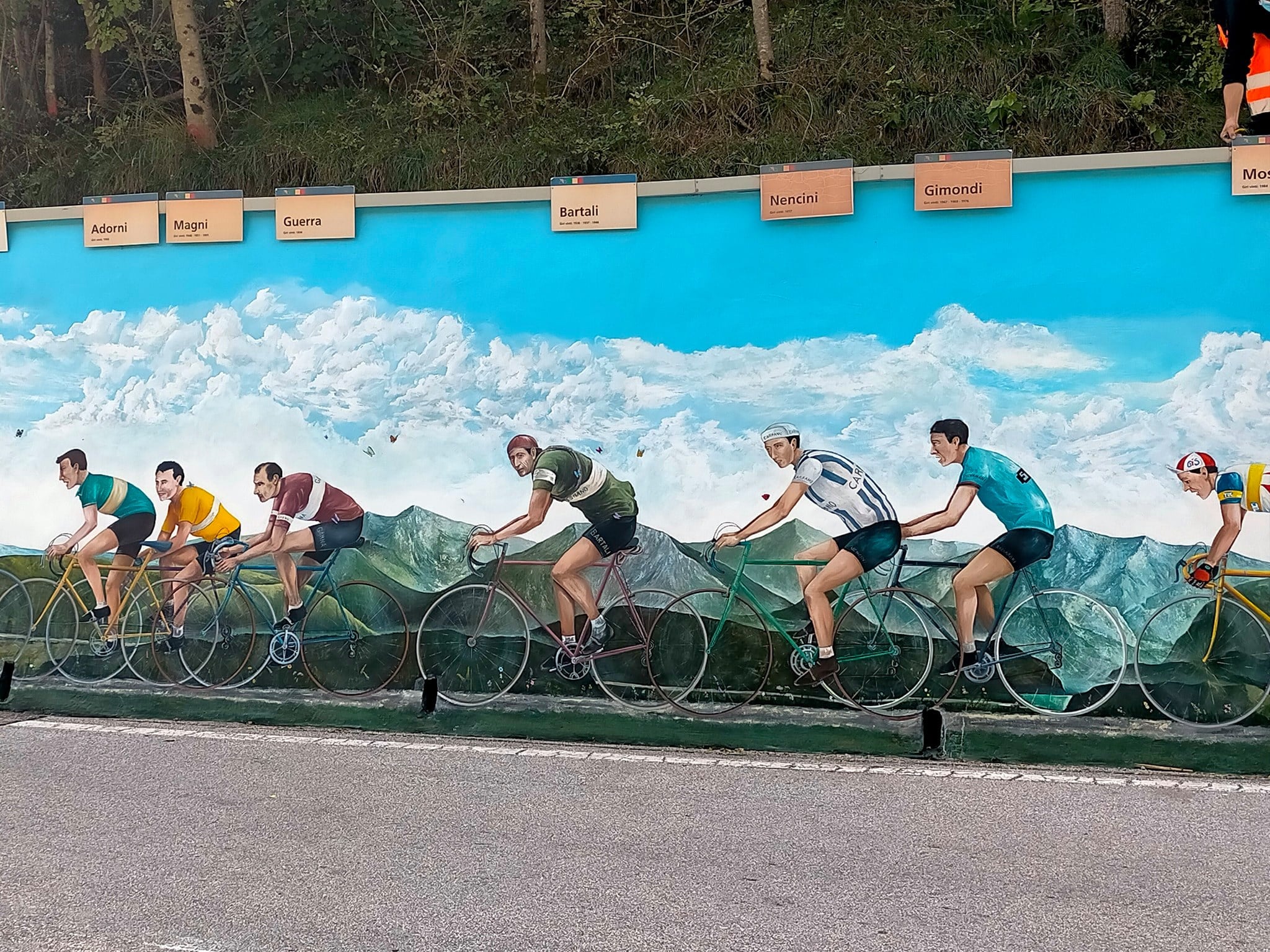 Nel murale, realizzato nel 2001 dagli artisti Giuseppe Brombin e Floreano Franzil con il contributo della Provincia di Udine, ci sono i ciclisti che hanno fatto la storia di questo sport, ovvero Bottecchia, Girardengo, Guerra, Binda, Bartali, Coppi, Magni, Nencini, Adorni, Gimondi, Moser e Pantani.