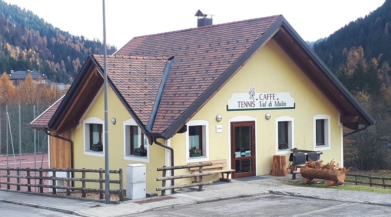 Oltre al punto di ristoro, dove vengono servite colazioni e aperitivi, al Caffè-Tennis Val di Mulin è presente anche un campo da tennis, che si può convertire in campo da calcetto e da pallavolo. Al piano terra ci sono gli spogliatoi per gli sportivi che lo prenotano.