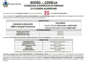 Ogni giorno consegnano la spesa e le medicine ai meno giovani ed alle persone in difficoltà. Sotto la supervisione ed in collaborazione con il Comune di Rigolato e i volontari della locale P.C. e della Sogit, ai quali si stanno aggiungendo anche gli iscritti ad associazioni e privati cittadini ed alle attività commerciali di Rigolato.