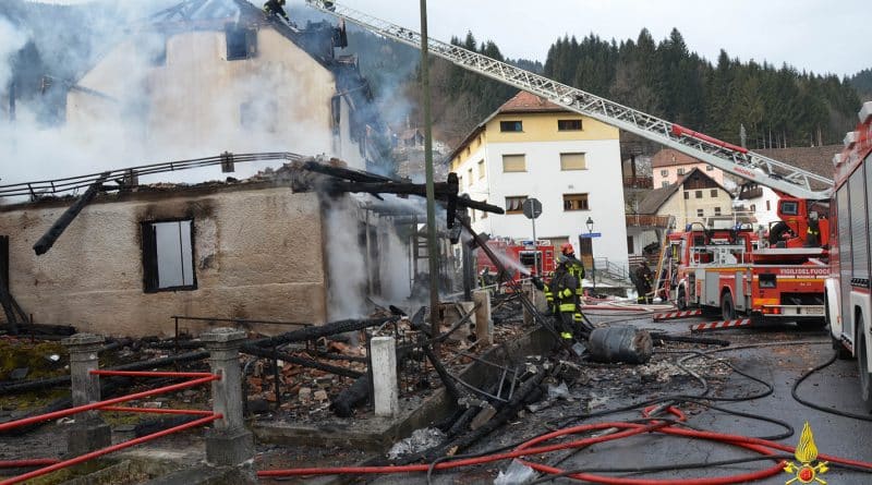 Sul posto sono intervenuti inizialmente i pompieri volontari di Rigolato con il proprio automezzo, supportati poi dai colleghi di Cercivento e del distaccamento di Tolmezzo, quindi di Gemona e Udine con l’autoscala e con l’ulteriore ausilio di una squadra di Pieve di Cadore. Ben venticinque gli uomini che per tutta la mattinata hanno operato incessantemente per evitare che il rogo procedesse ad intaccare anche altri edifici. Per permettere le operazioni è stata bloccata temporaneamente anche la circolazione lungo la strada regionale 355 della Val Degano, con il traffico deviato per la frazione di Valpicetto. Quindi una volta circoscritto, l’incendio è stato definitivamente spento, i Vigili del Fuoco successivamente hanno proceduto a smassare il gran quantitativo di