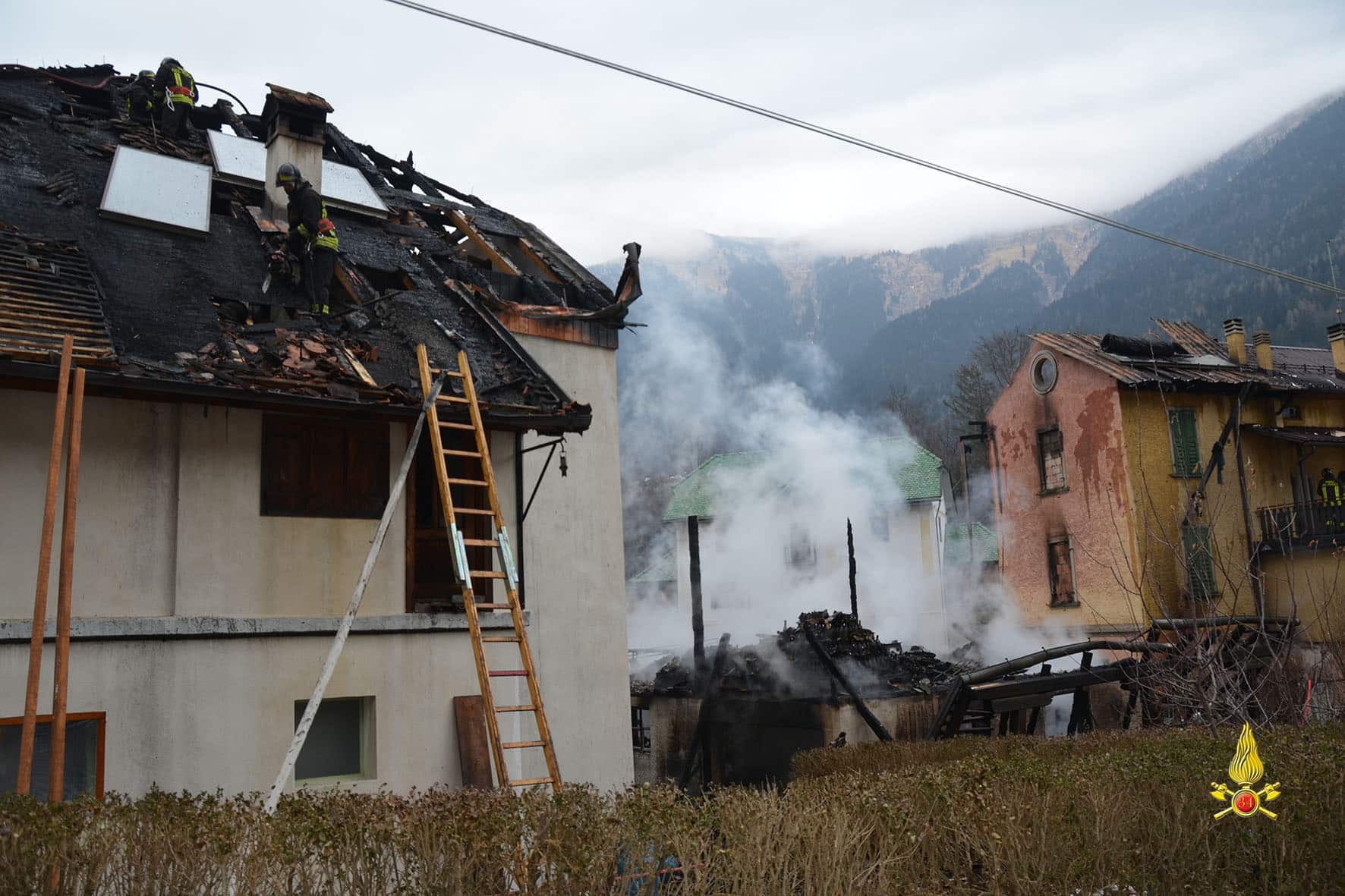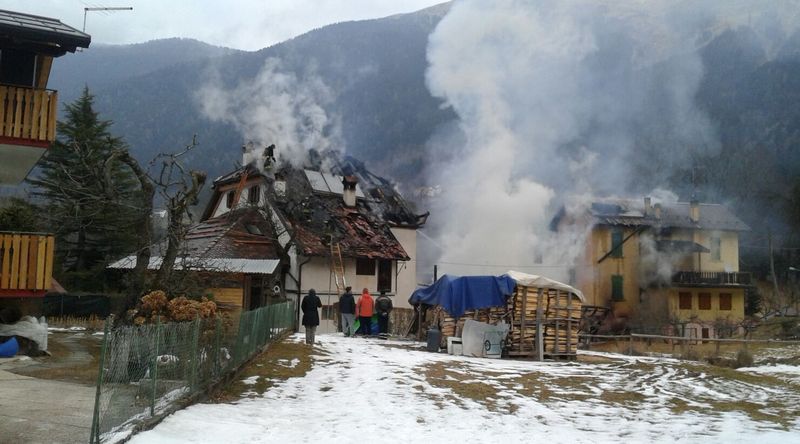 materiale arso mettendo in sicurezza le abitazioni che causa il pesante danneggiamento della copertura, sono state quindi dichiarate inagibili. Le famiglie hanno trovato ospitalità presso parenti e presso un albergo di Comeglians.