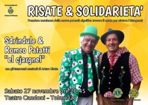 Sabato 27 novembre al Teatro Candoni di Tolmezzo torna un appuntamento teatrale dal forte valore umano e sociale, ovvero la serata “Risate & Solidarietà”, promossa dai Lions Club di Tolmezzo, in collaborazione con il Rotary Club, il patrocinio del Comune e il supporto di enti assistenziali del territorio.