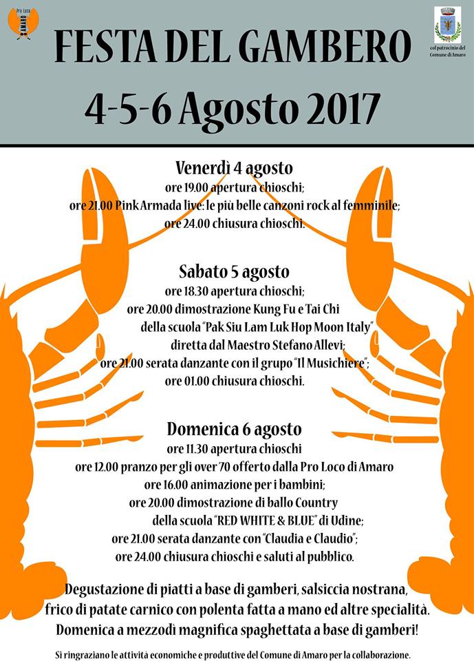 Ritorna ad Amaro la tradizionale Festa del Gambero, con tre giorni dedicati alla gustosissima pietanza ed altro ancora.