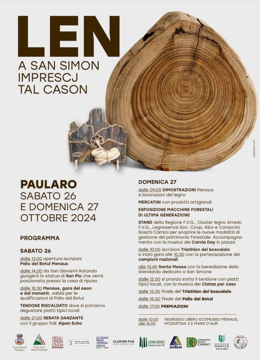 Appuntamento questo fine settimana a Paularo con “Len”, la tradizionale festa della Val d’Incarojo dedicata al legno.