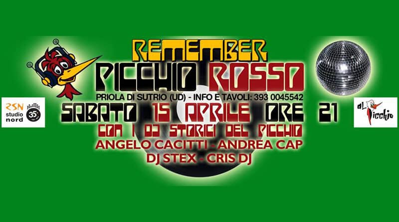 Dopo il grande successo delle quattro edizioni precedenti, ritorna “Remember Picchio Rosso” alla discoteca di Priola di Sutrio, evento che vede la collaborazione di Radio Studio Nord.