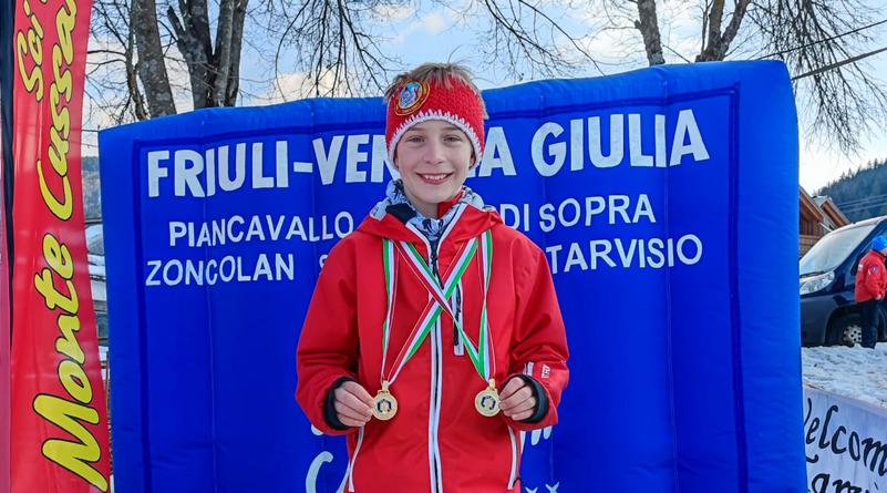Samuele Beltrame vince tutto agli Italiani U12 di salto e combinata a Tarvisio