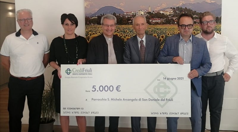 Il contributo, nei giorni scorsi, è stato consegnato dal presidente di CrediFriuli, Luciano Sartoretti, nelle mani del parroco, Sergio De Cecco, alla presenza anche dei collaboratori della filiale locale della banca.